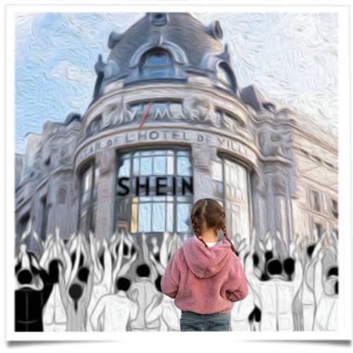 SHEIN is this ogre a clown? This smuggled Jonah lands on the asphalt of Châtelet, by the unexpected hiccup of a Great Trabucaire Collector, pounding out the drumbeat of slander and fashion. In short, at the BHV, fast fashion is turning into religion, and Paris lights a polyester candle. Because on November 5 at exactly 1 p.m., while some in the neighborhood will be lunching on lukewarm quinoa thinking about the end of the world, others will hurry to the BHV to witness an event of historic significance: the opening of the very first physical store in the world of the Chinese brand.
