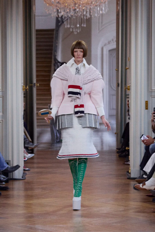 But let’s not be cynical: Hector now has his own mythology. This season, the pooch reigns proudly among interchangeable bermuda shorts because you have to keep reinventing the idea of the “new bag” when you keep selling the same thing. And since Thom Browne never does things halfway, the faithful companion even shows up embroidered into tweed intarsia and Mogador silk. You can almost picture the dog yawning in boredom amid so much seriousness.