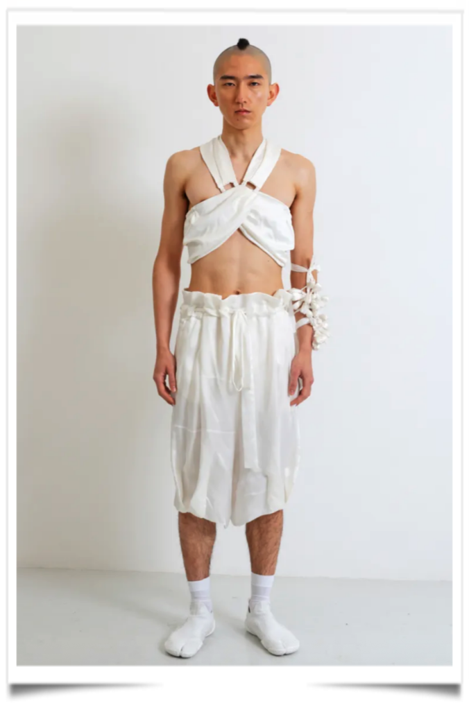At Doublet, clothes are not made, they are interrogated at length, and sometimes they answer, but beside the point. The AIR collection, for example, does not merely take the pulse of the times. It asks for their papers, treats them with suspicion, takes them into custody, and finally prints them. Air? Yes, CO₂, that discreet gas with no loyalty card, yet always present when it was not invited, in order to ape Owens.