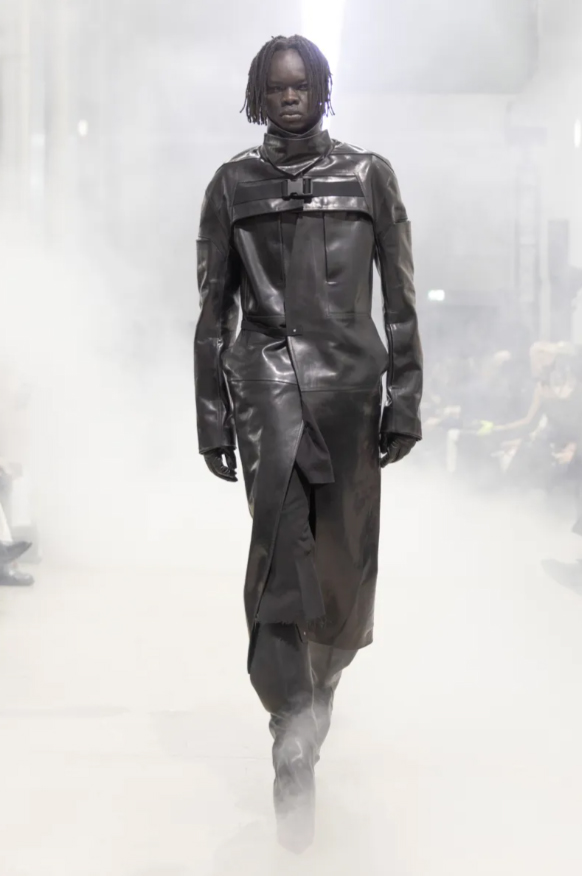 The leather coats, almost stubborn in their rigidity, conveyed a dark and severe impression. Their sharply defined back vents, along with fastenings reminiscent of harnesses, seemed to carry within them the memory of martial discipline, as though these garments had been shaped not only for the body, but for an idea of authority and constraint. They evoked a world in which the individual bends to a greater, impersonal force that no one can ignore.