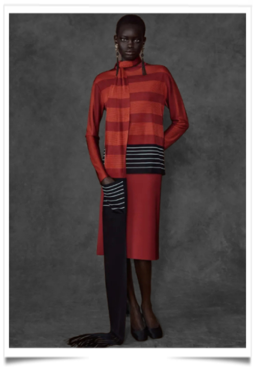 The knits seemed intent on teaching the air how to become lighter, the pleated trousers recalled a time when ease did not mean surrender, and the low-waisted pencil skirts advanced with the fragile determination of silhouettes that insist on remaining free in a world that leans too heavily on them.