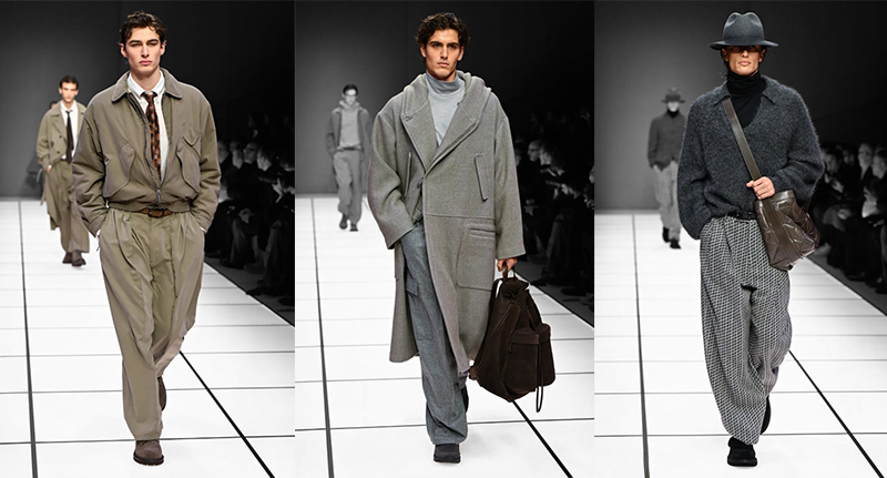 The models emerged from the dressing room as one steps out of a mental wardrobe, the place where lived seasons are stacked one upon another. Beneath their feet, the floor became a patchwork, strewn with rugs of uneven sizes, varied motifs and styles, mirroring those memories that never quite arrange themselves into order. The bodies, young or mature, drawn from diverse geographies, and at times even female, formed a long, nuanced sentence, in which each silhouette added a new inflection to Sartori’s discourse. There was nothing uniform here. Everything belonged to a subtle harmony.