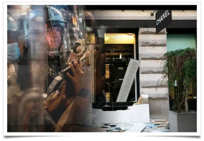 Stores across the borough including Chanel in Soho and Coach in Midtown were targeted by unruly protesters in the fourth night of demonstrations over the death of Floyd. The police kept an eye on the Chanel Boutique, Probably Afro-Americans with no taste.