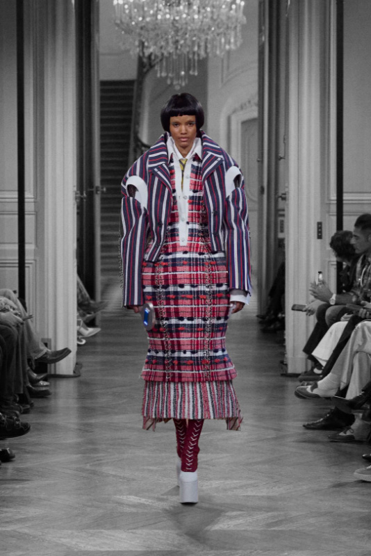 The menswear pieces are not left behind: down jackets, ripstop, Japanese denim… and a varsity jacket reading “World of Thom Browne” for those without a diploma from the Fashion institution nothing less!